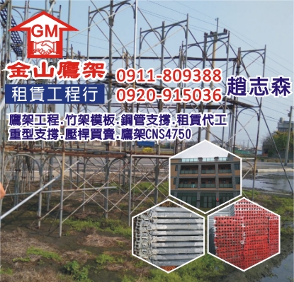 鷹架工程、竹架模板、鋼管支撐、鷹架租賃買賣、鋼管萬向活扣、重型支撐、鷹架CNS4750、鐵件角材、壓桿模板支撐斜撐、不銹鋼安全玻璃欄杆、鷹架施工、安全欄杆、機械式昇降機平台、組合式鷹架、基礎結構、防護、竹架、鐵架、鋼管架、施工架租賃買賣、安全防護防墜措施、支撐圍令、槽鋼、覆蓋板樑、千斤頂、覆蓋板、支撐鷹架、系統模板、型鋼塔架、租債代工、台中鷹架工程、台中鷹架施工、台中鷹架出租買賣、台中安全欄杆、台中機械式昇降機平台、台中基礎結構、台中鋼板樁、金山